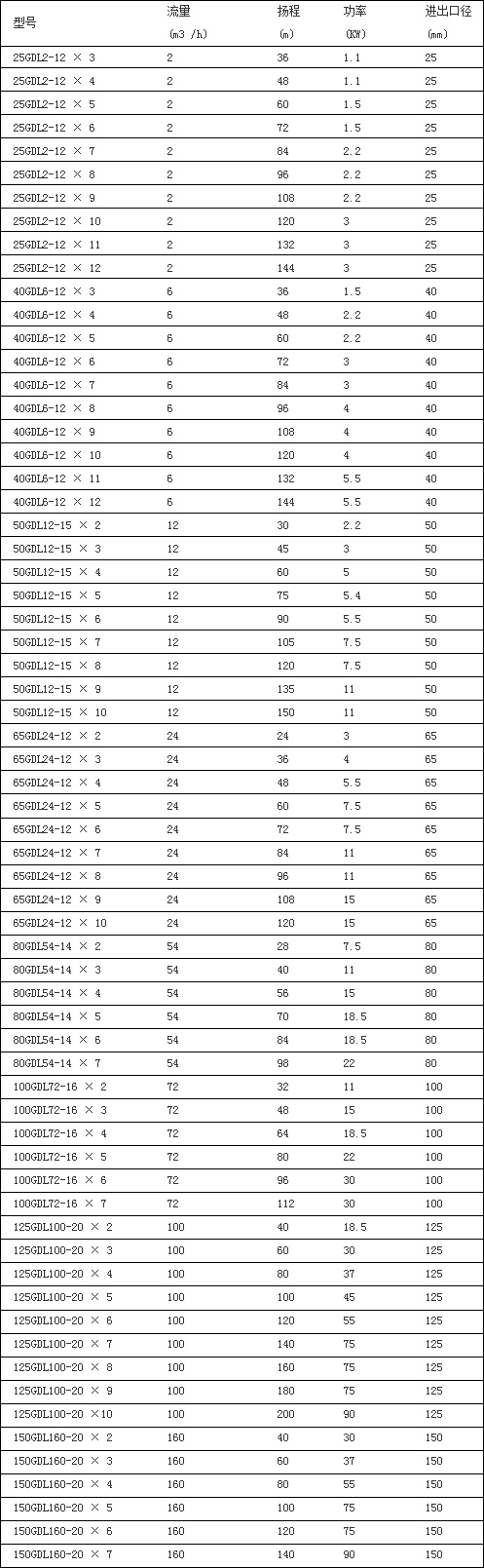 四、GDL多級(jí)管道泵性能參數(shù):